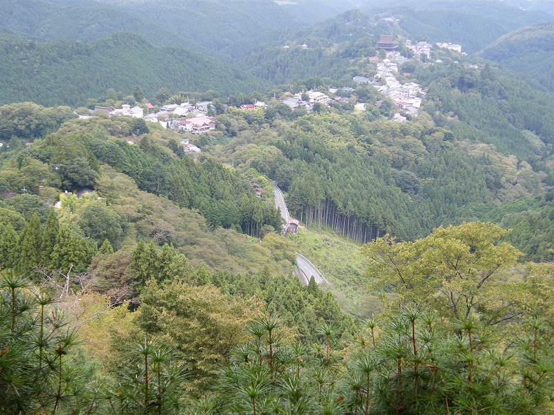 花矢倉から少し下ったところから金峰山寺を見る。