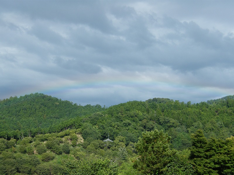 実は、虹が出ていたから撮っただけなのだけど、家に帰って確認してみたら、右の構図と山の稜線が似ているじゃなイカ。もしかしたら、当たりかも。