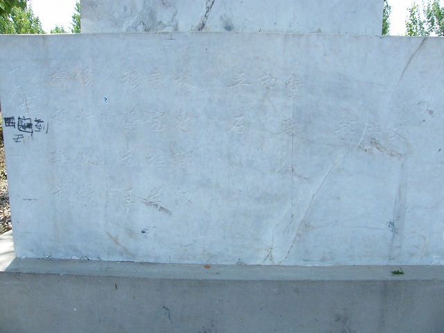 石碑下部分のアップ、何か書いてあるけど、読めない